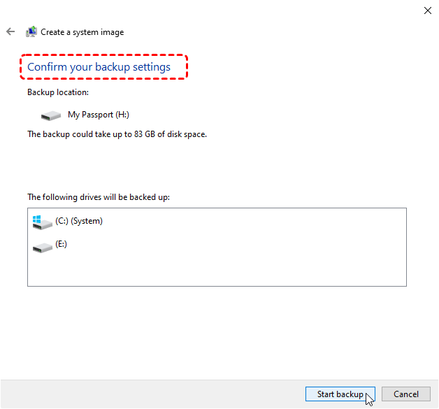 Step 6. Confirm your backup setting and click "Start backup"and wait for it to finish.