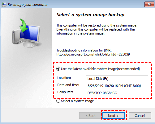 Step 4. Choose your system image backup location (external drive, network, etc.).Follow the prompts to restore your system image.