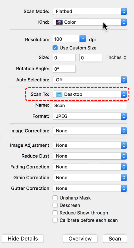 Mac’s built-in scanning tools Preview and Image Capture allow you to scan directly from a connected scanner. These apps may save files in a specific location set during the scanning process. Here we take Image Capture as an example: