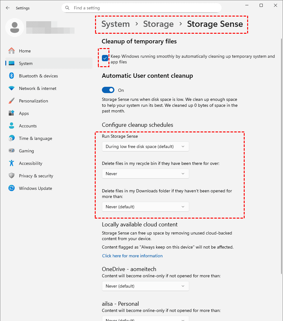 4. Then the Storage Sense will clean up your temporary files on your schedule.