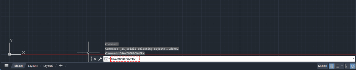 Way 1. Type DRAWINGRECOVERY at the AutoCAD command line (alias: DR on some versions).