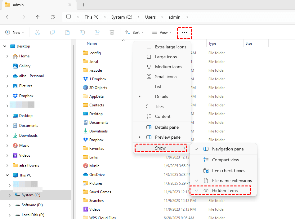 This method temporarily reveals the Recycle Bin folder, allowing you to access files safely.