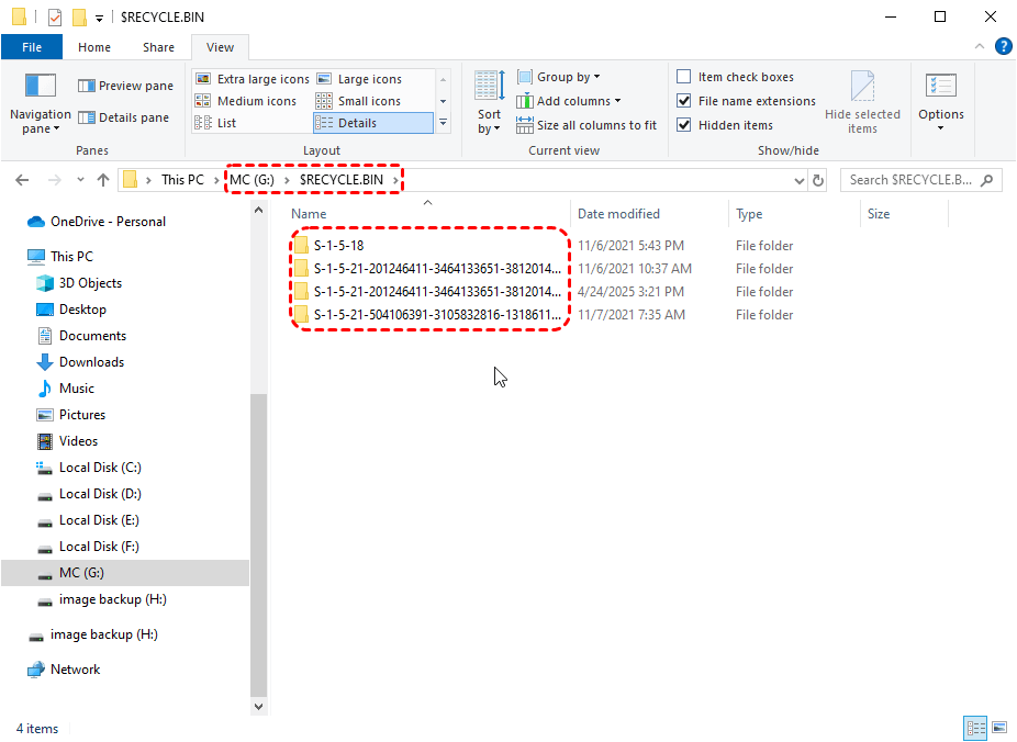 When you delete a file from a USB drive, Windows may move it into a hidden folder named $RECYCLE.BIN. This folder exists on each drive, including external USB drives, as long as the drive supports it.