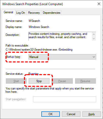 Step 4. Set "Startup type" to "Disabled" or "Manual", then click "Stop".