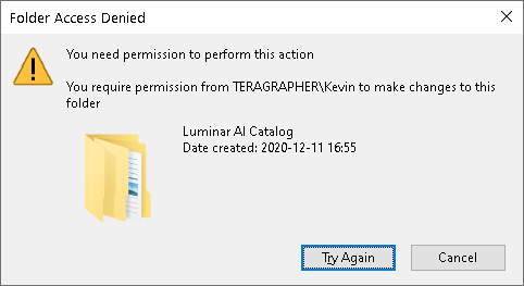 - Try accessing the folder as admin.