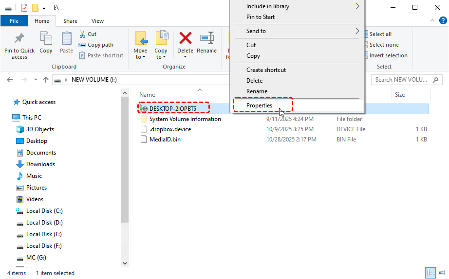 Step 2. Open the folder containing your backup files, usually. Right-click the backup folder > "Properties".