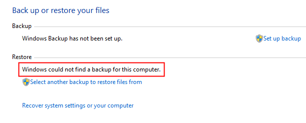 🏹Deleted or Missing Backup Files: If the actual backup files have been accidentally deleted or overwritten, Backup and Restore will show "Windows could not find a backup for this computer".