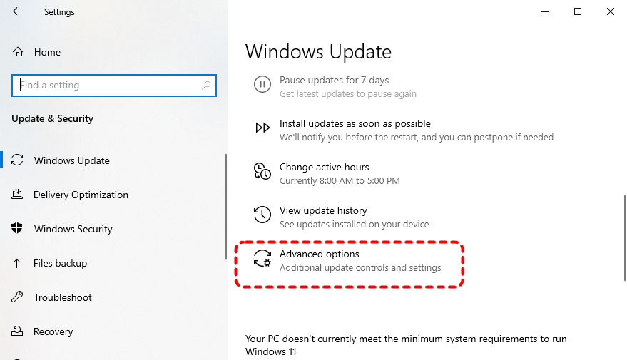 Step 1. Go to "Settings" > "Update & Security" > "Advanced options".