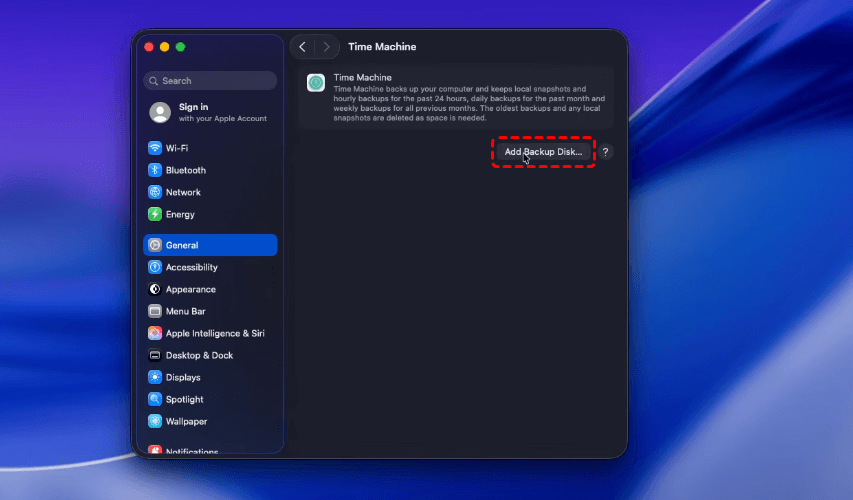 Step 4: Click "Add a drive"to manually select the backup drive from a list of available options.