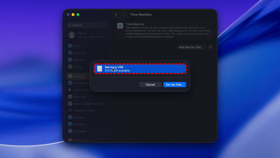 Step 7: After selecting the disk, Time Machine will typically "start your first backup automatically within 2 minutes". You'll see a progress indicator and the estimated time remaining.