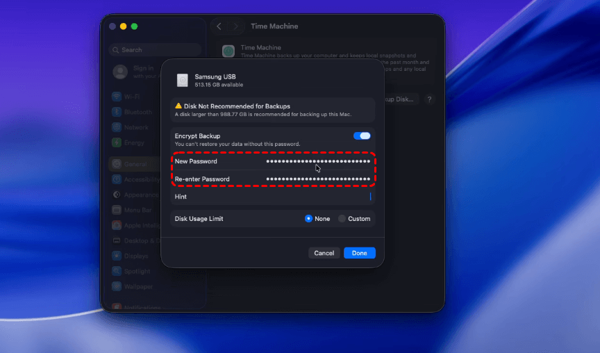 Step 6. You can turn on Encrypt Backup to protect your backup from unauthorized access (highly recommended for security).