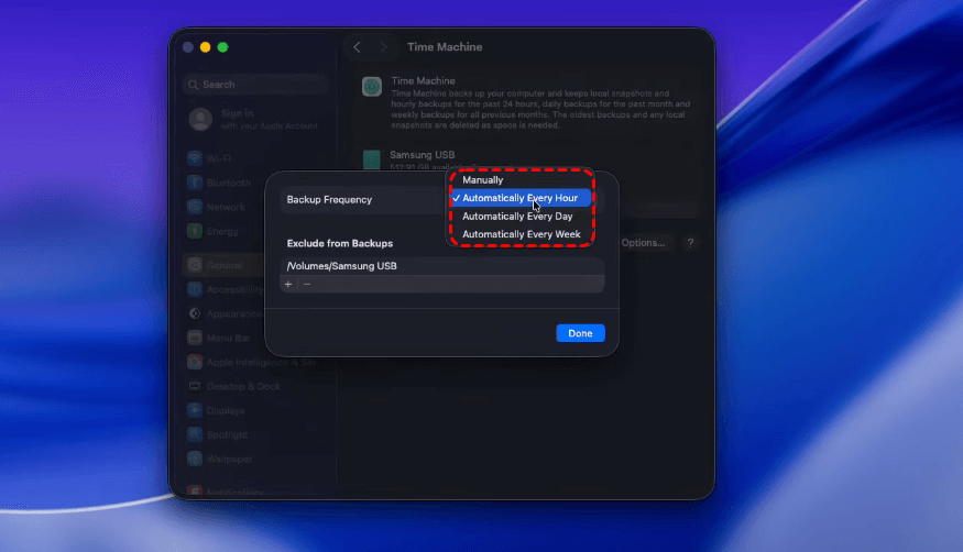 - You can change the default behavior toHourly,Daily, orWeeklyin (macOS Ventura & Later).