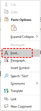 Step 3. Right click on the blank space and choose "Font" to reveal hidden formatting marks.