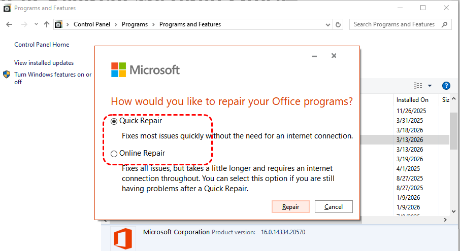 Method 8. Repair or Reinstall Microsoft Office