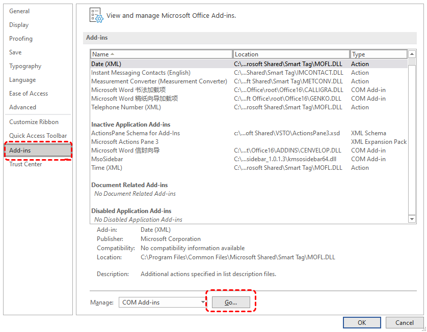 Step 4. Click "Go" next to "Manage: COM Add-ins" to open the "COM Add-ins" window.