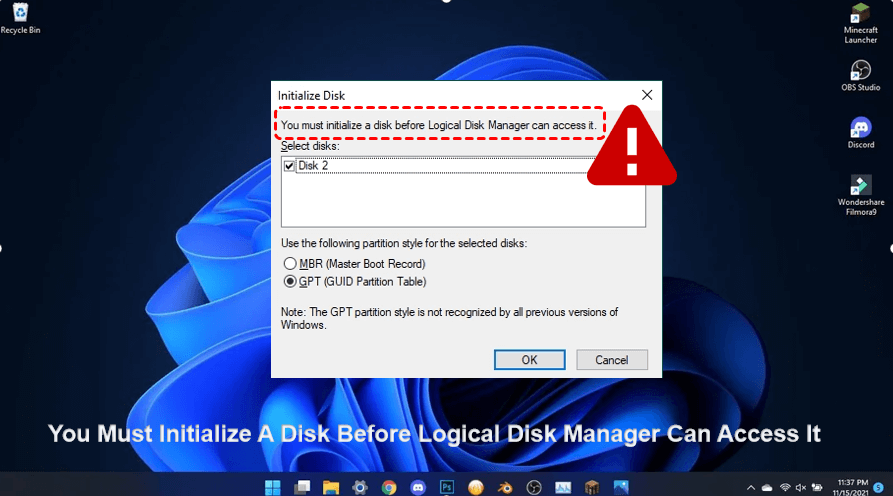 You Must Initialize a Disk Before Logical Disk Manager Can Access It
